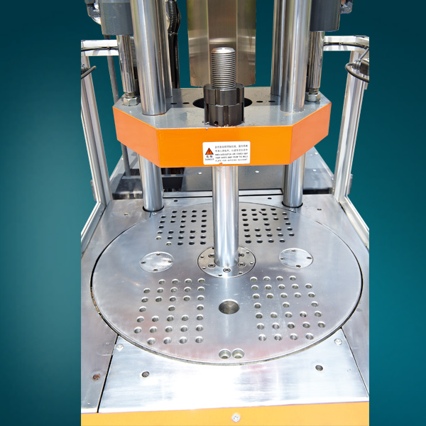 ☆ 上模板安裝1個上模,圓盤上安裝2個下模;生產(chǎn)時,圓盤做180。正反轉(zhuǎn)交替或360。旋轉(zhuǎn),生產(chǎn)效率更高;